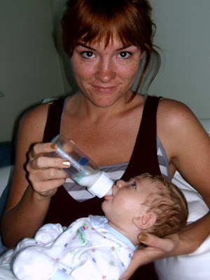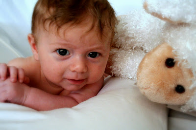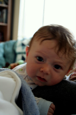 Ethan's at the Doctor's Office right now because we think he has an ear infection. He cries whenever he's on his side or when he's swallowing (which makes it pretty hard for him to eat). He doesn't, however, have a fever...