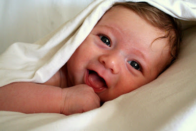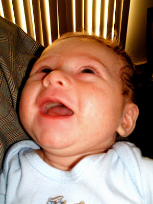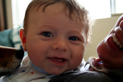And he's SO happy regardless (this is actually a picture from when Grandpa and Grandma were visiting, but it's his typical facial expression whenever he gets a glimpse of his mom or dad).